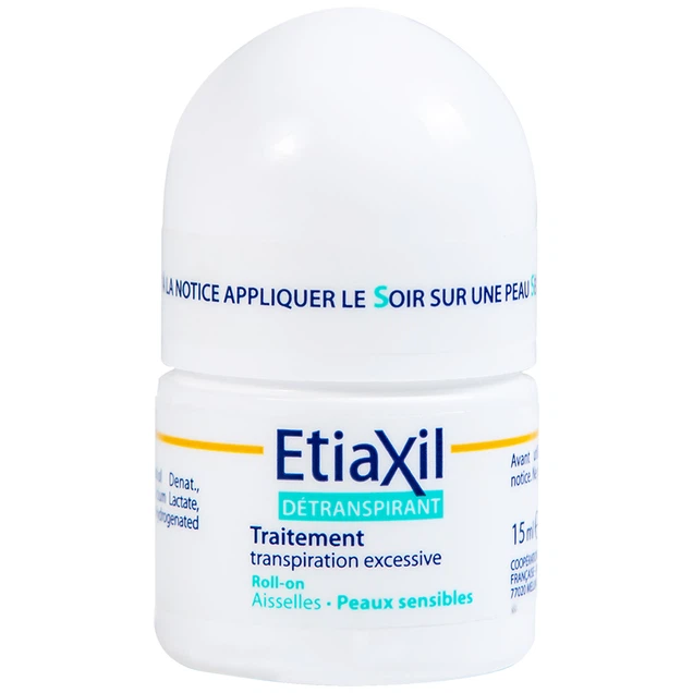 Lăn khử mùi đặc trị EtiaXil Detranspirant Aisselles Peaux Sensibles dành cho da nhạy cảm là dòng sản phẩm khử mùi nổi tiếng của thương hiệu EtiaXil xuất xứ từ Pháp, giúp đặc trị khử mùi hôi cho vùng da dưới cánh tay lên đến 72 giờ, đồng thời ngăn tiết mồ hôi và giữ cho vùng da nhạy cảm luôn khô thoáng. Công thức sản phẩm đặc biệt không màu, không mùi, không bết dính, không gây ố vàng và thâm nách.